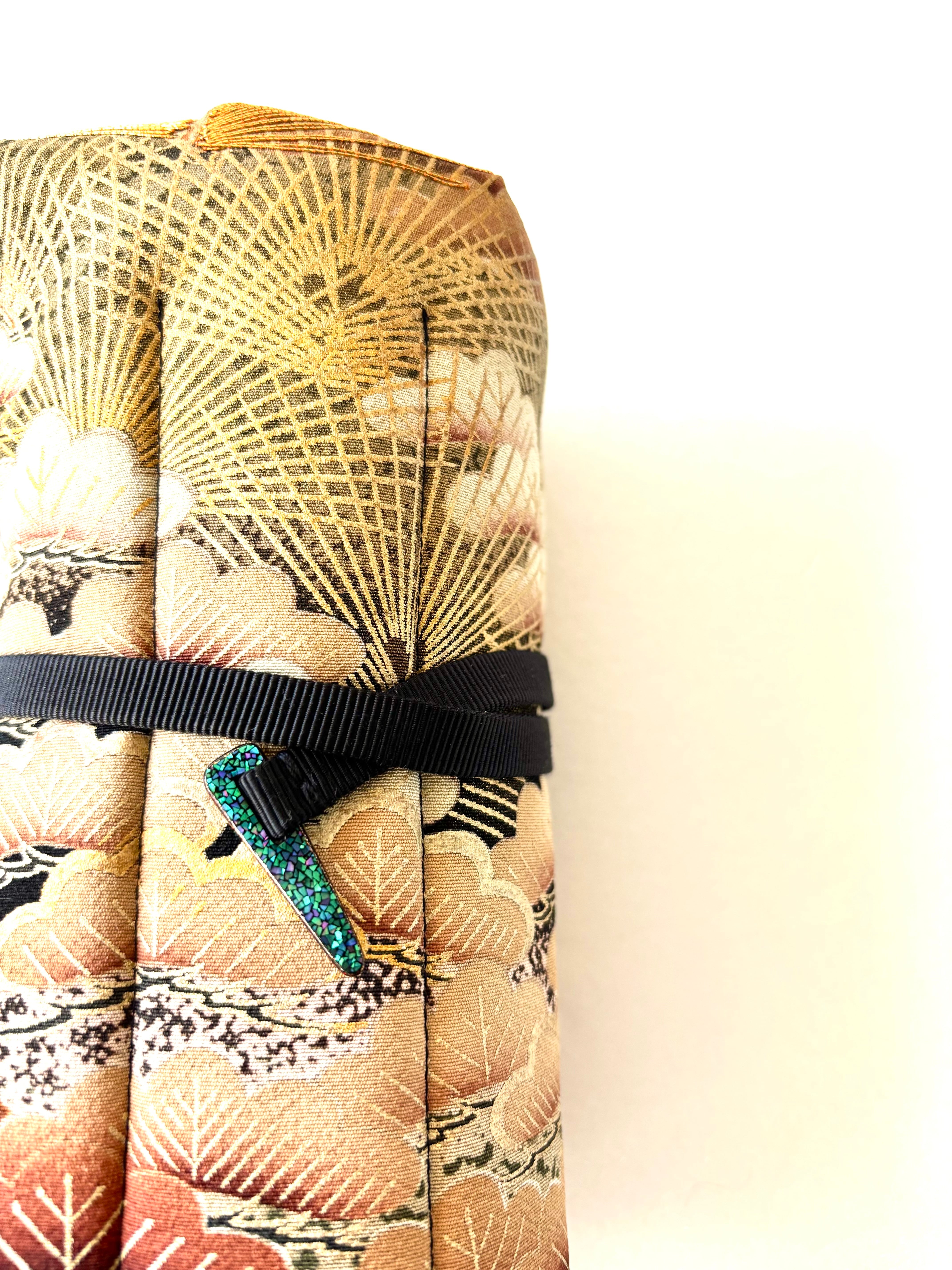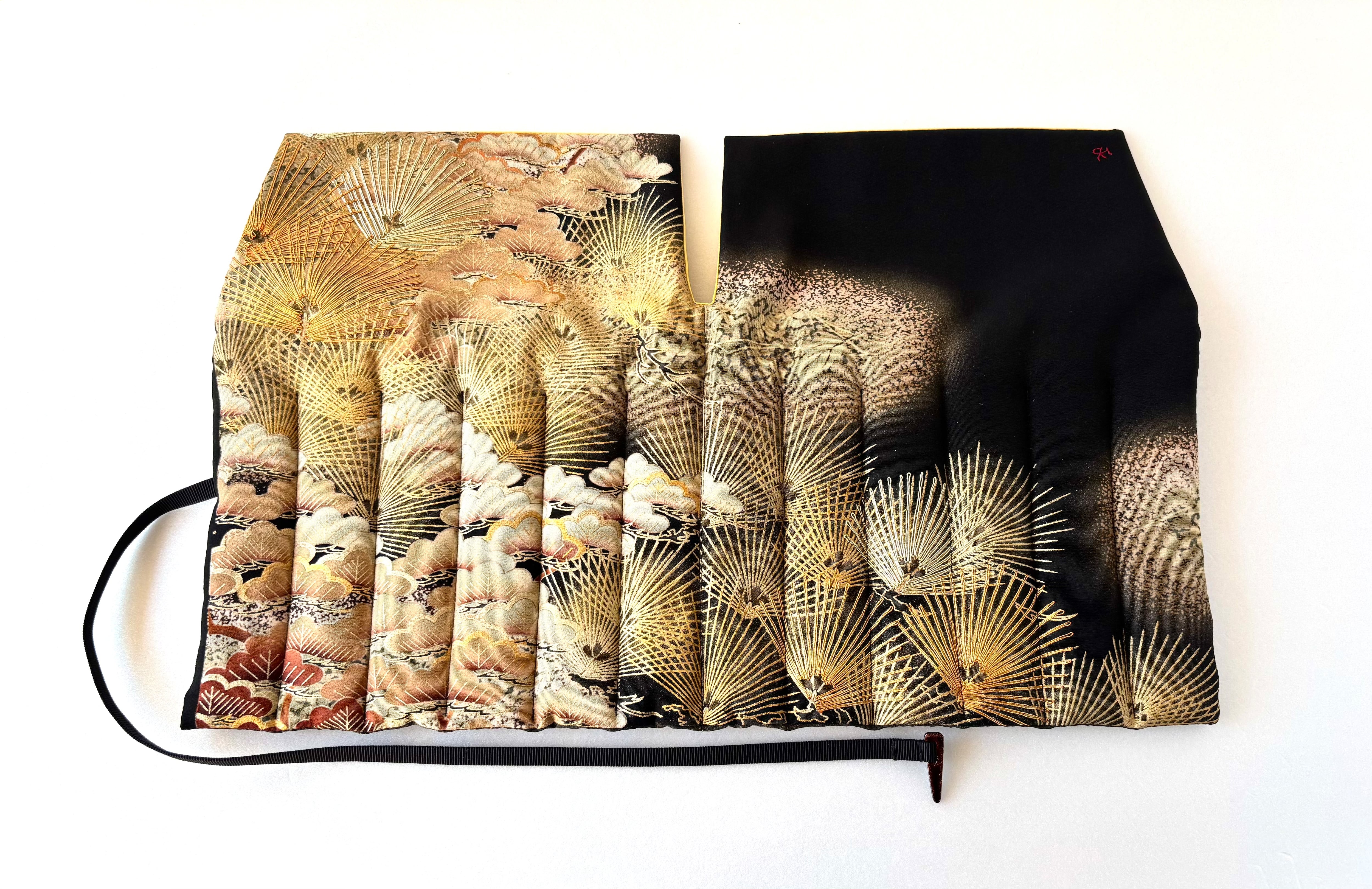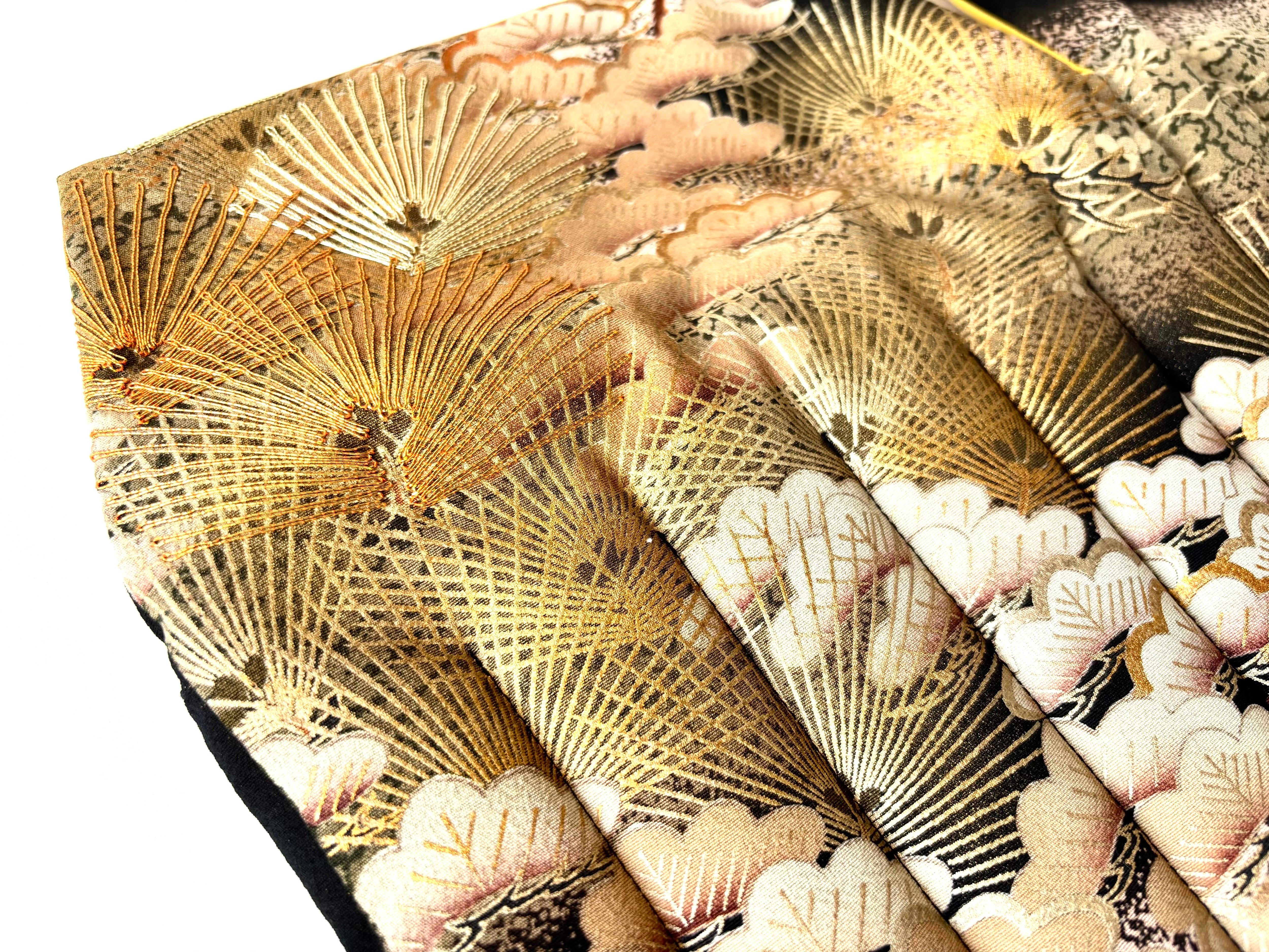 The kimono fabric used this time is a subdued yet gorgeous fabric with gold and silver pine trees on a black background. In traditional Japanese motifs, pine trees are evergreen and remain green even in winter, symbolizing "eternal life," "longevity," and "vitality," and also carries the auspicious meaning of "prosperity and family fortune." It is a motif that is often used in kimonos.