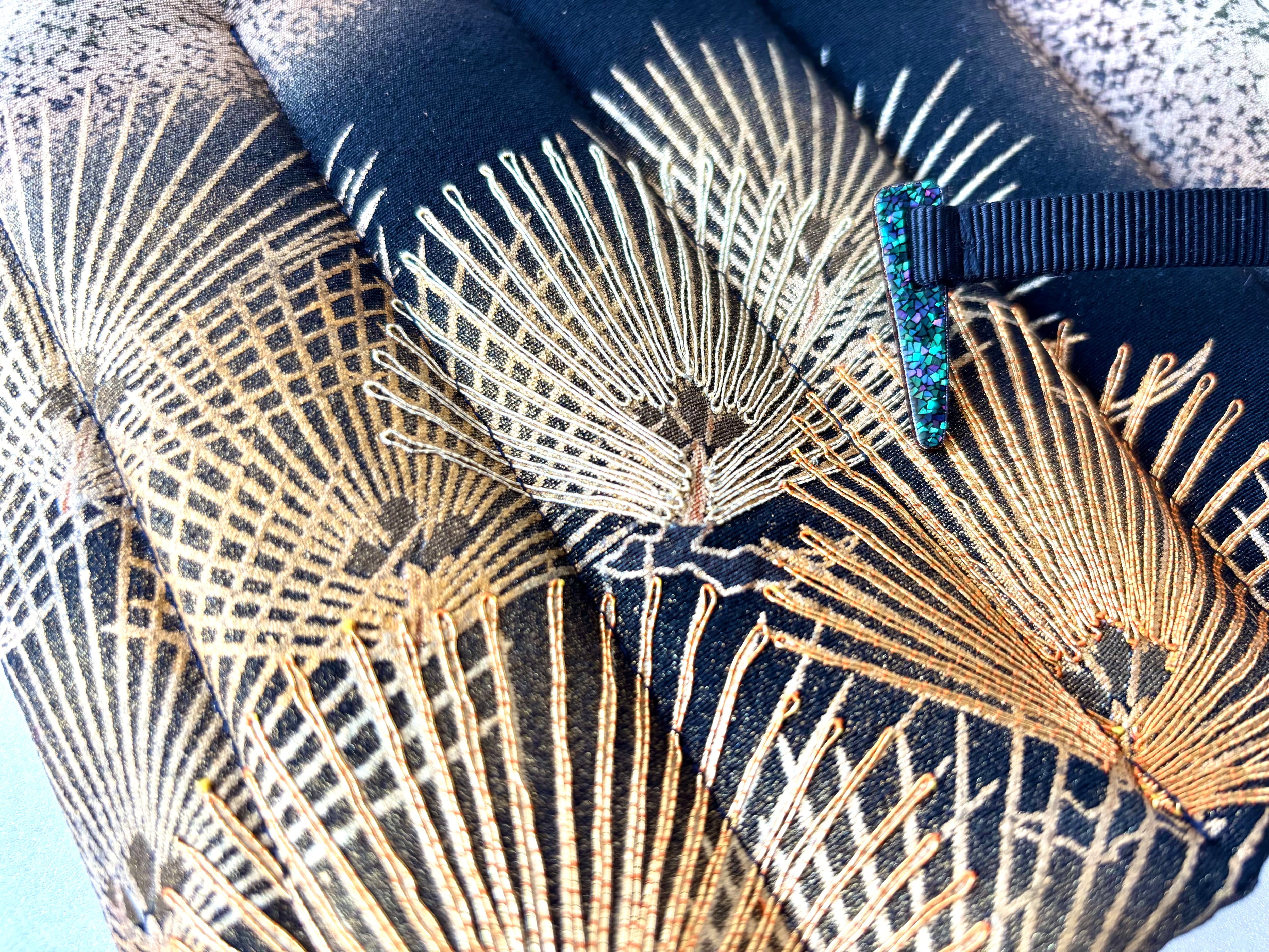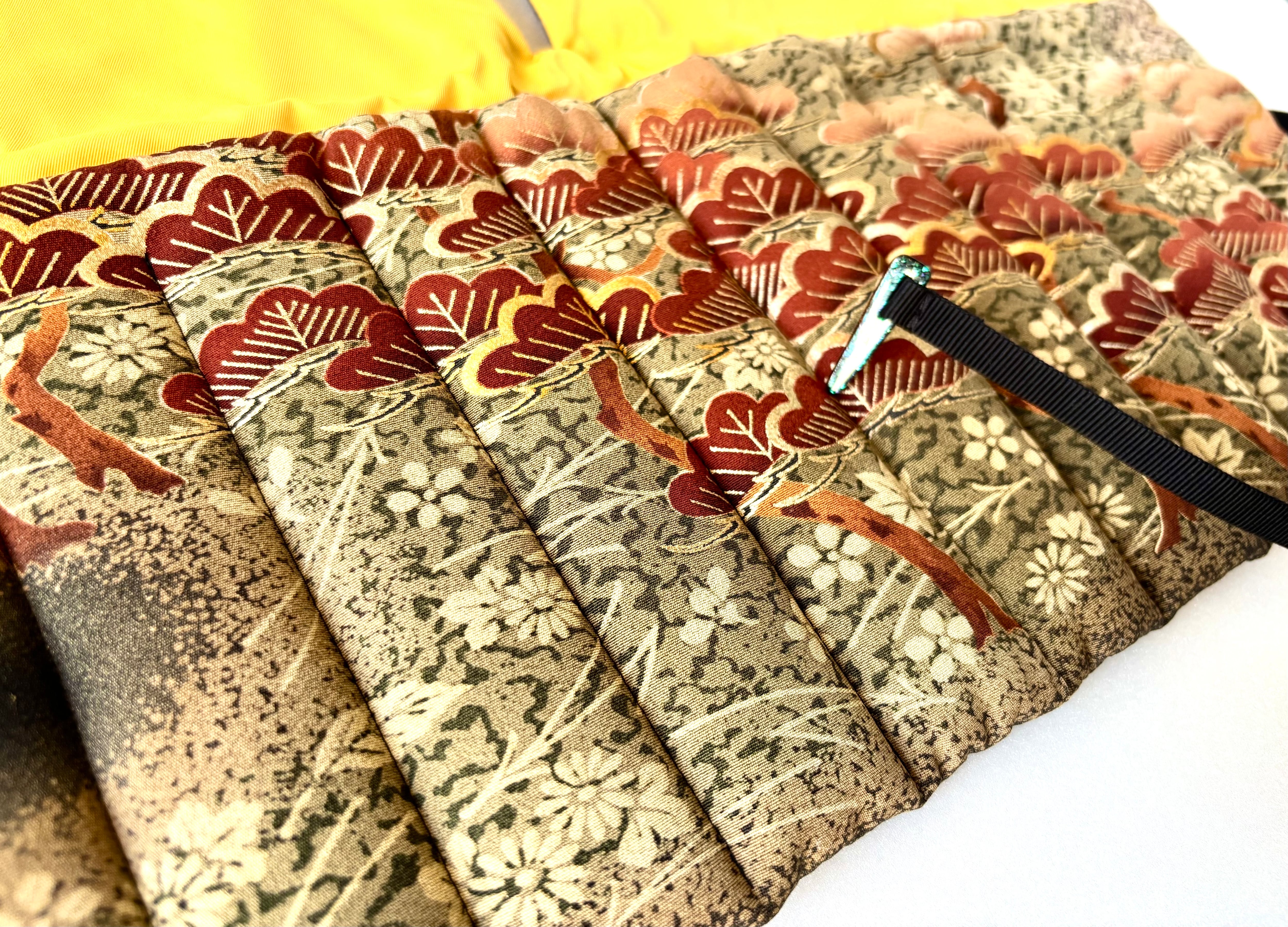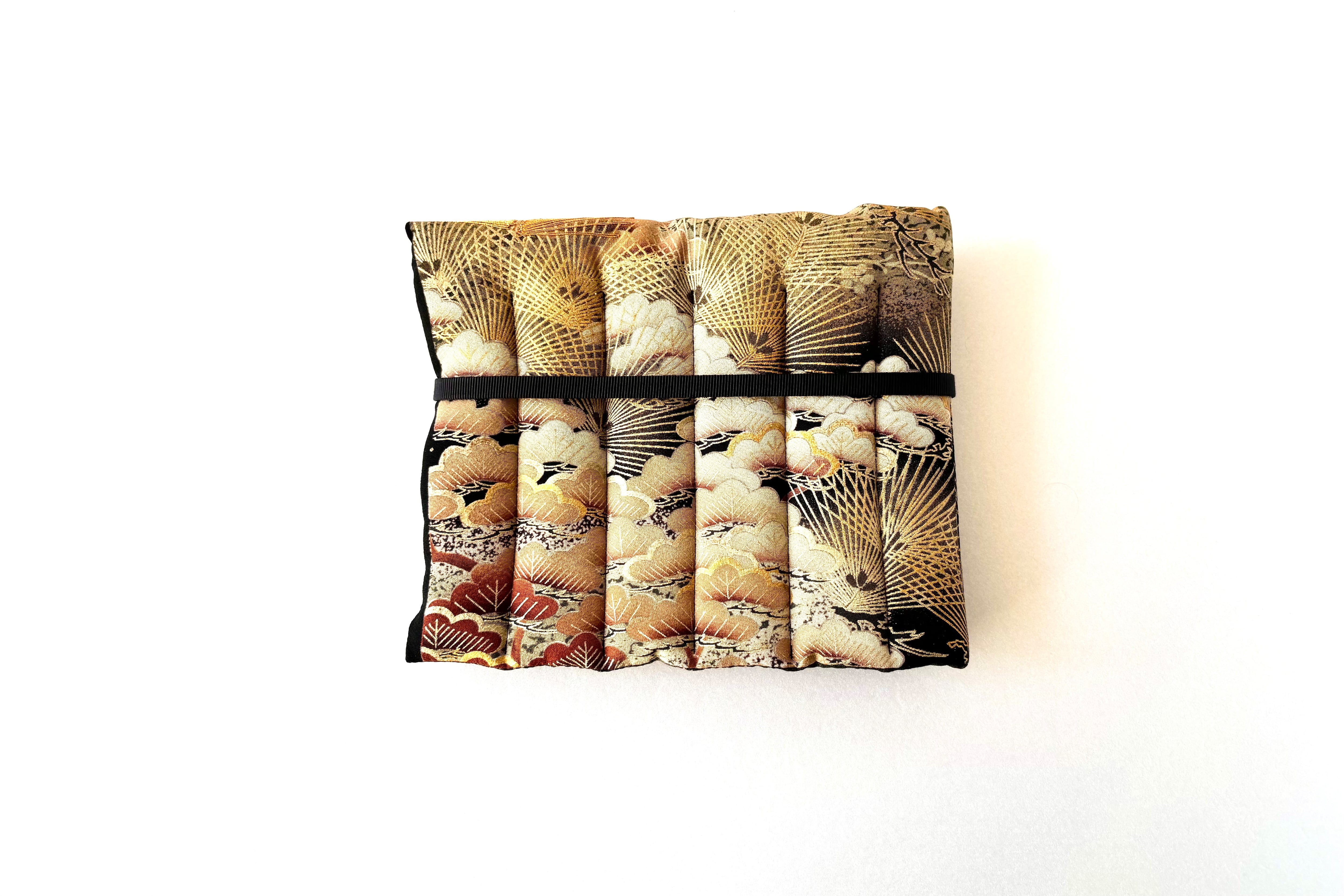 The kimono fabric used this time is a subdued yet gorgeous fabric with gold and silver pine trees on a black background. In traditional Japanese motifs, pine trees are evergreen and remain green even in winter, symbolizing "eternal life," "longevity," and "vitality," and also carries the auspicious meaning of "prosperity and family fortune." It is a motif that is often used in kimonos.