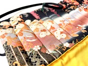 The fabric of this kimono features a flower cart design. Flowers from each season are gorgeously arranged in a flower basket and placed on top of a cart. This design is beloved today as a gorgeous imperial design and is used for formal wear.