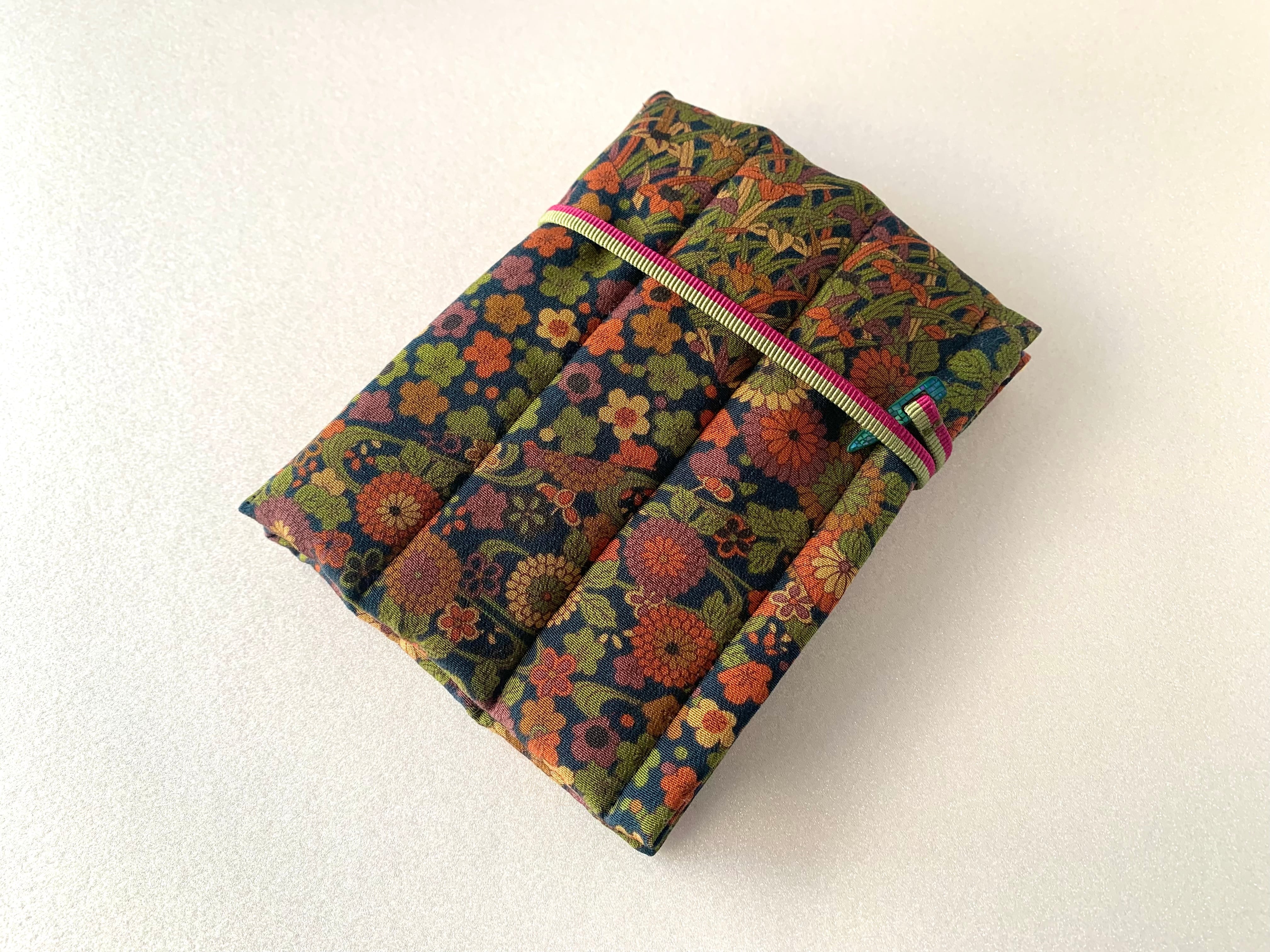 Pen case for 6 pens #4 navy-blue×flower pattern (greenpurple string)